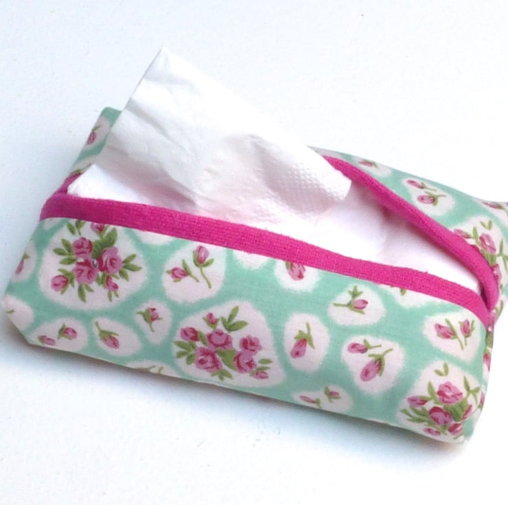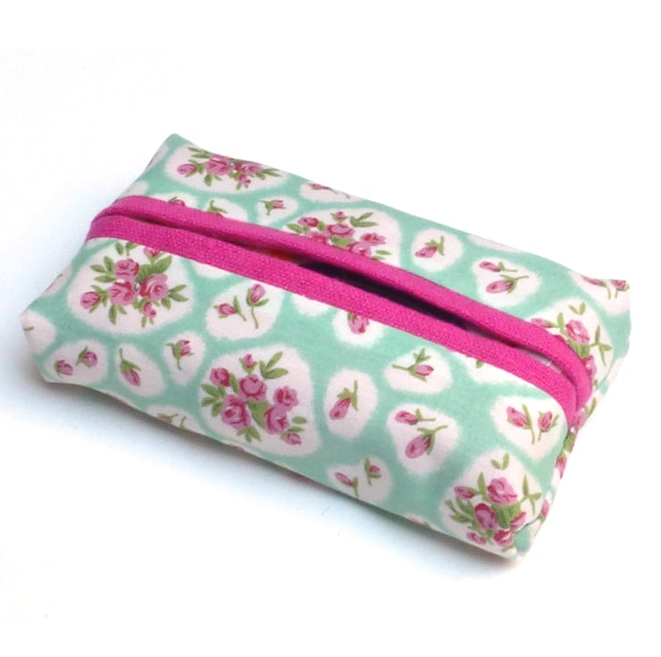 I often have small pieces of fabric left over from larger projects and these pocket tissue holders are a great way to utilise them. Pretty and useful, they also mean that these otherwise useless scraps are kept out of landfill!