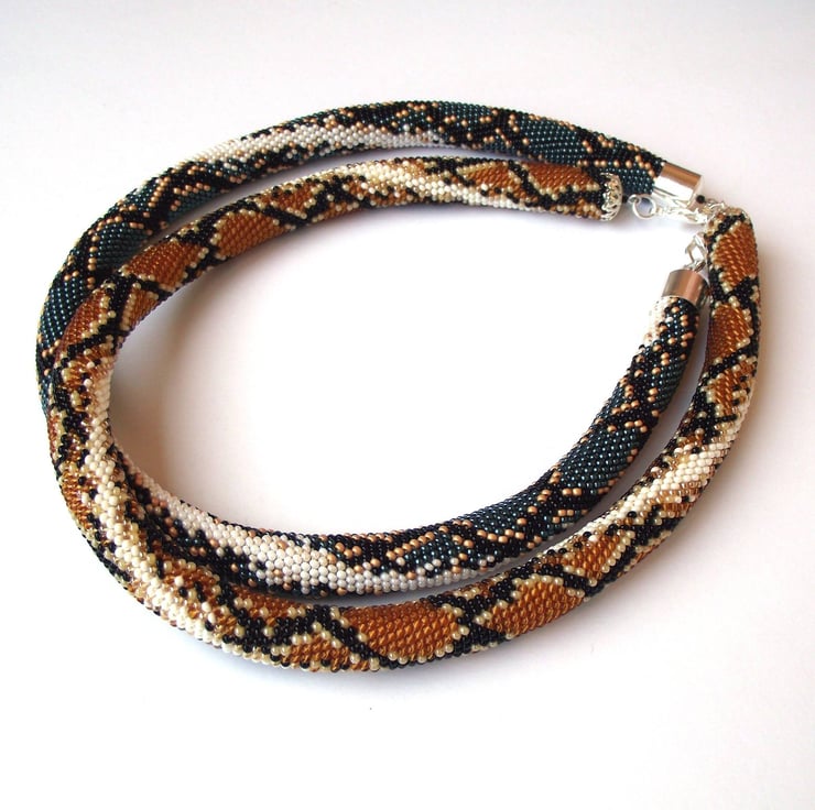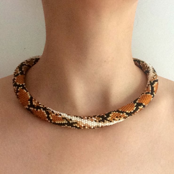 A beautiful rope necklace with snake/ python pattern in brown.