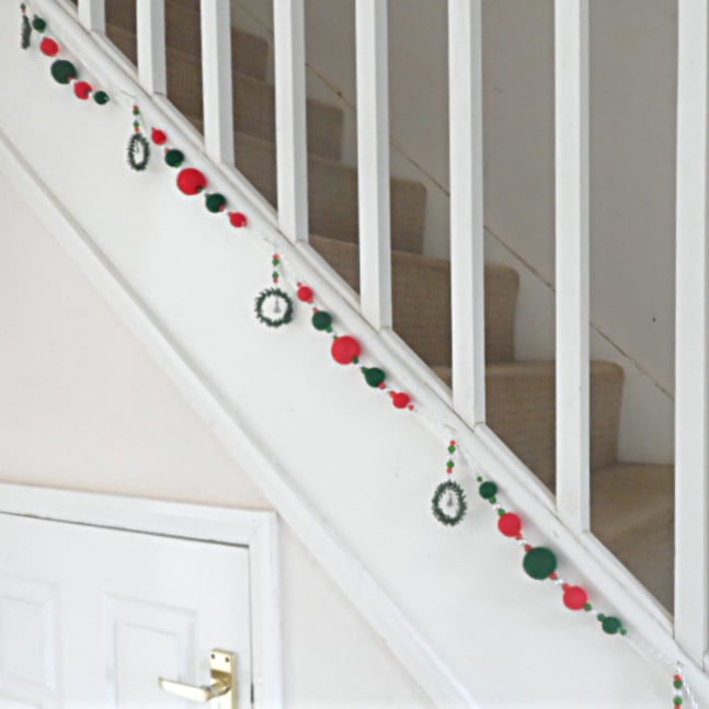 The garland measures approximately 170cm (67") in length, the largest felted balls are 3cm (1.2") in diameter and the wreaths 5cm (2") in diameter. The wreaths have been attached to the chain using jump rings to which hanging threads can be attached if desired.
