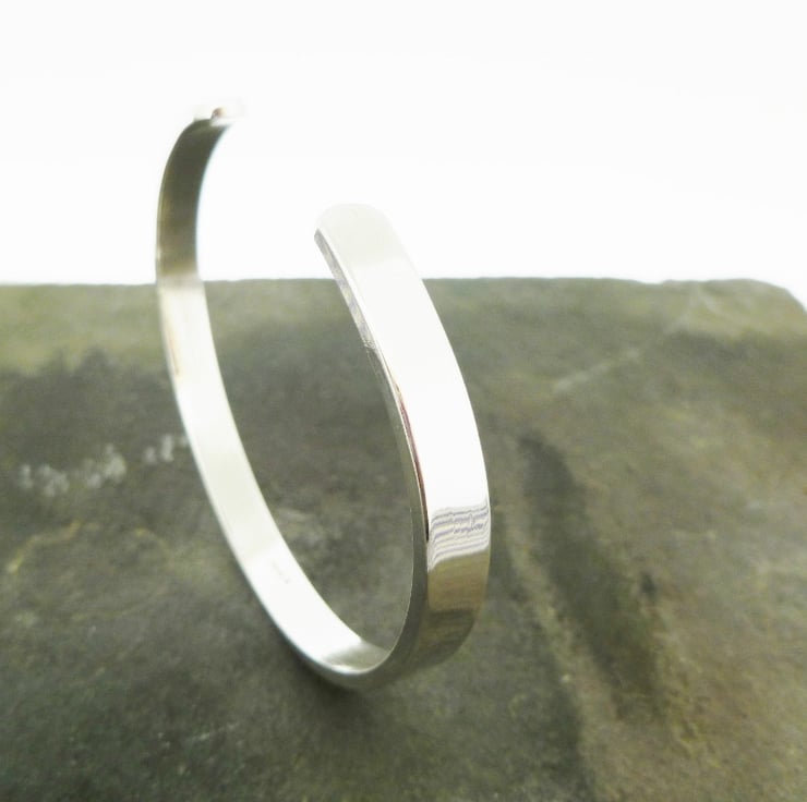 Made from 6mm wide 2mm thick rectangular sterling silver wire, with a high polish finish, this bangle is stunning worn on its own, or mixed with other pieces.
