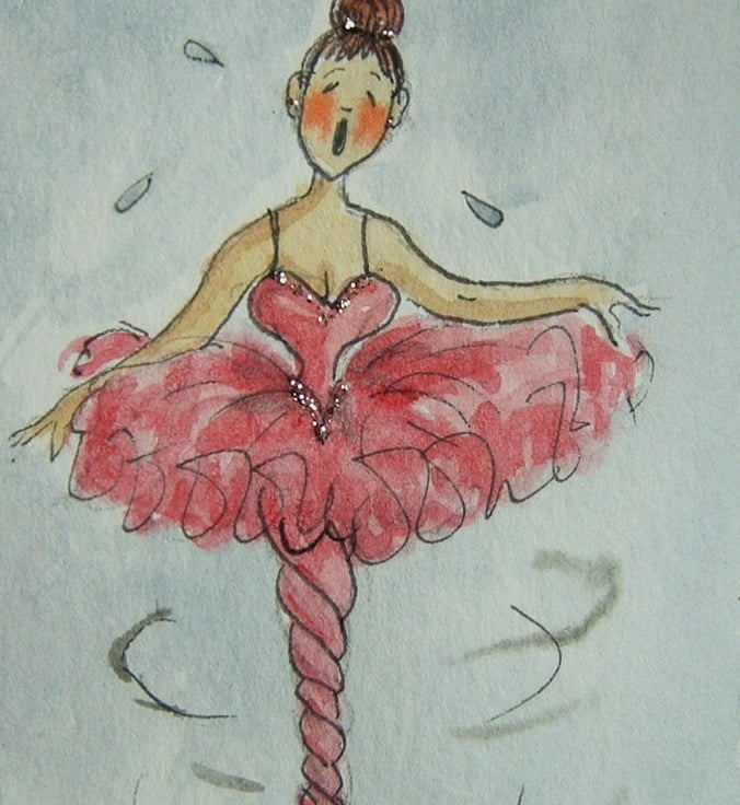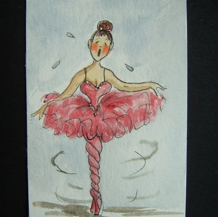 This Ballerina has got in a twist doing her pirouette !! She has been painted using quality materials. This is an original and not a print. It is a watercolour with added glitter.