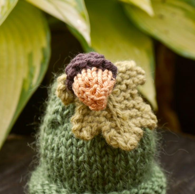 Hand knitted by me, this green egg cosy is made with using a lovely 100% aran wool and has an acorn and oak leaf attached which are made with a mixture of wool and cotton yarns. It will keep your boiled egg nice and warm. There is also a large tea cosy and a small one cup tea cosy to match (see photos). Take a look in my shop for further details.