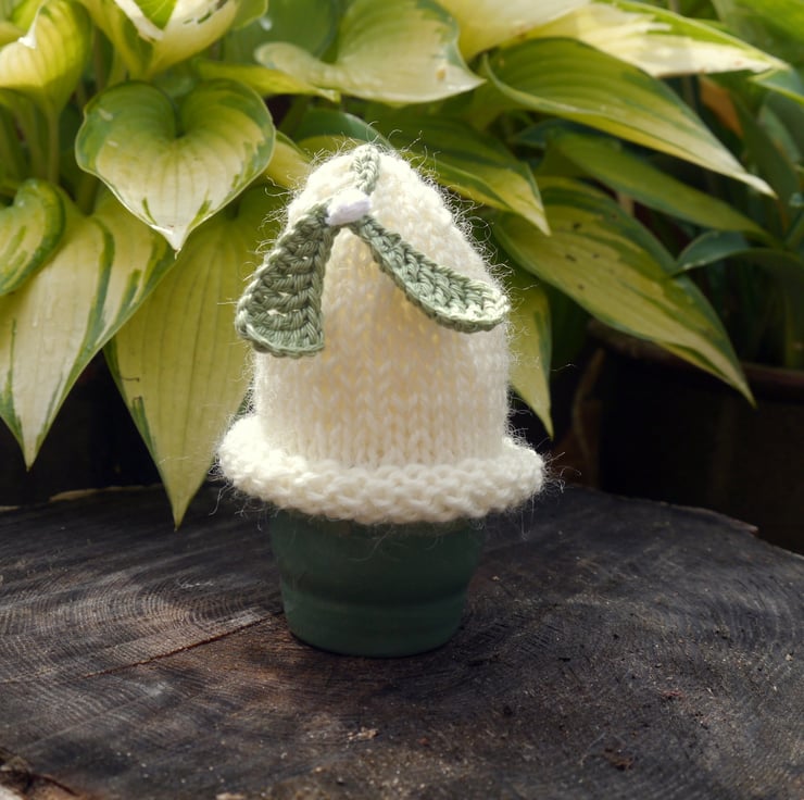 Hand knitted by me, this cream egg cosy is made using a lovely wool mix yarn and has a crocheted sprig of mistletoe attached. The sprig of mistletoe is crocheted using a bamboo and cotton mix yarn and there is a white cotton berry attached.