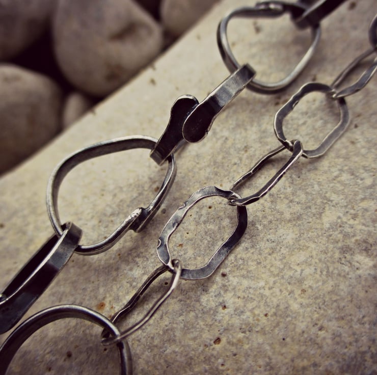The solid Sterling Silver chain is hand-crafted piece by piece using my skills picked up over the years. Each link is unique, and perfect within it's imperfections.