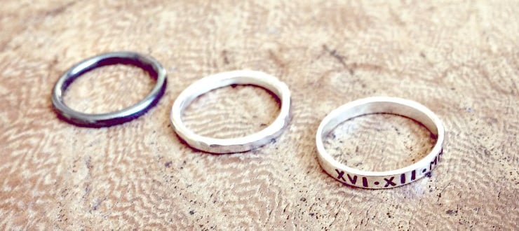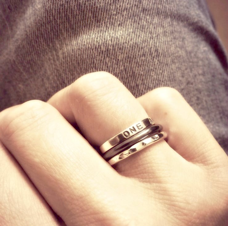 The first is a flat band, that can be stamped with the words of your choice in teeny tiny letters that measure approx 1.5mm.