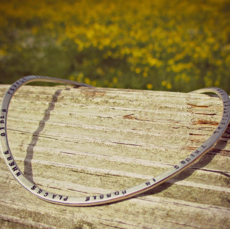 As you can see, it doesn't lay flat, I shape it randomly after stamping your chosen text, so every one is a little different to the next....like people :)