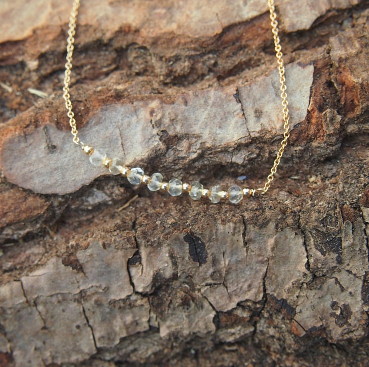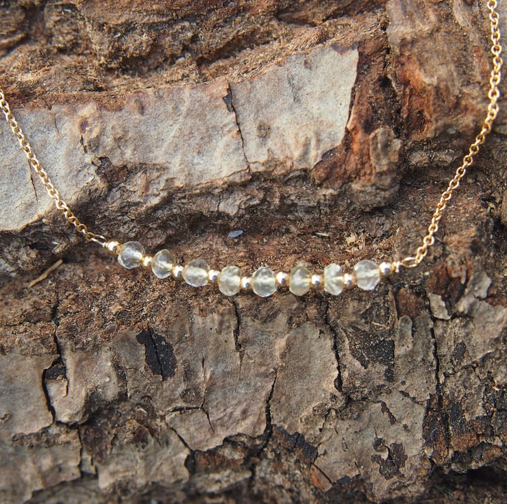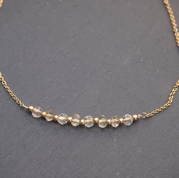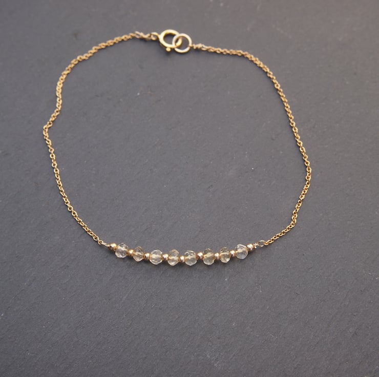 Delicate and pretty bracelet in fine rolled-gold chain with 8 (the Chinese number for good luck) small facetted citrines, interspersed with tiny gold spacer beads and a simple clasp - to be worn on its own, or layered with other bracelets.