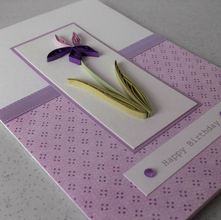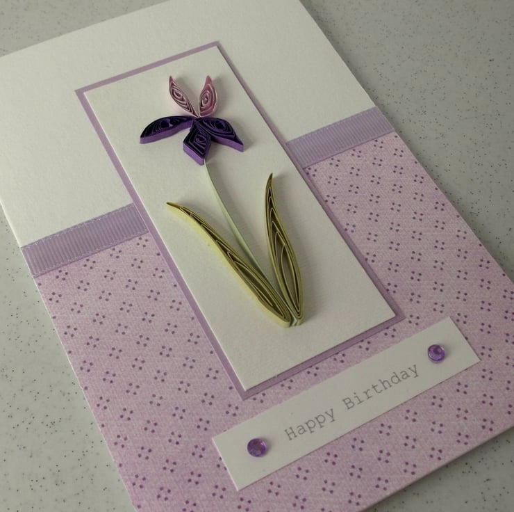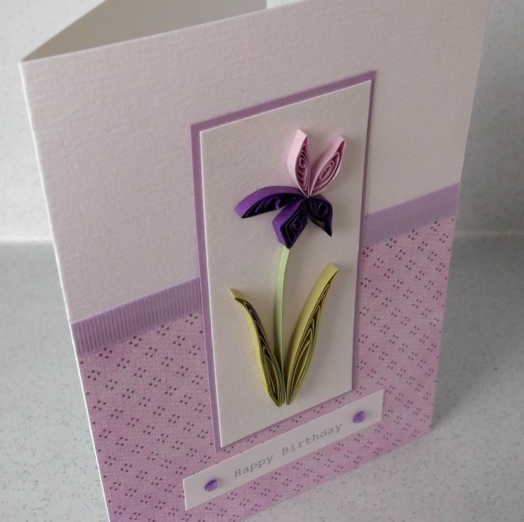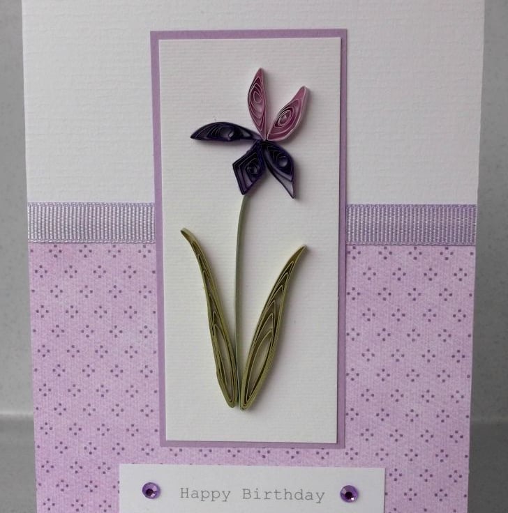 Quilled handmade birthday card, quilling iris