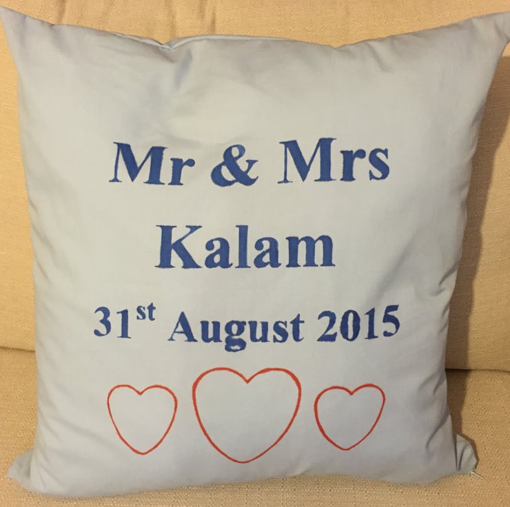 It is my 2nd wedding anniversary and a friends wedding day, we designed the cushion together (although she did not know she would also be receiving one on her wedding day).