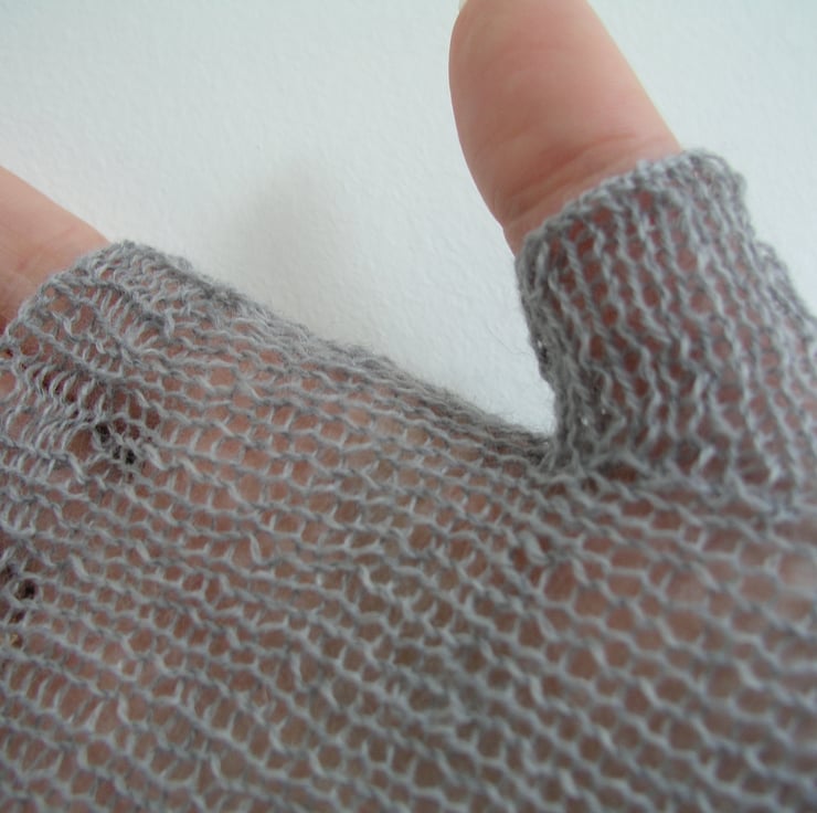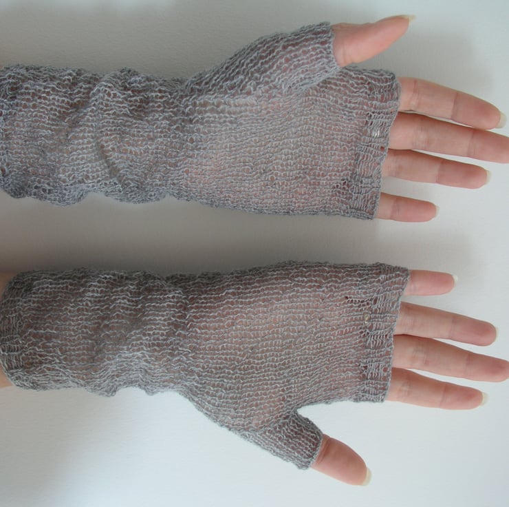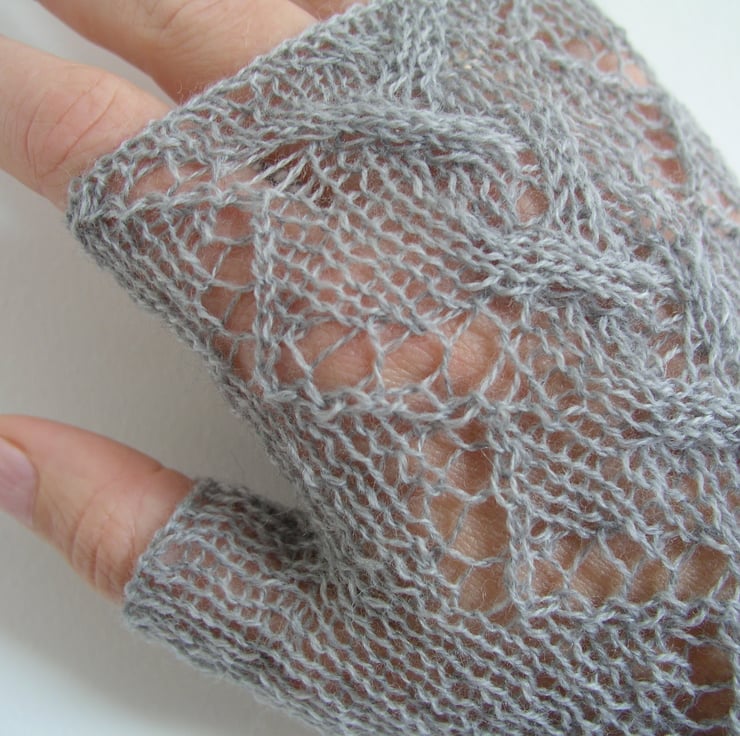 Soft delicate pair of fingerless gloves knitted in a lovely lacy pattern