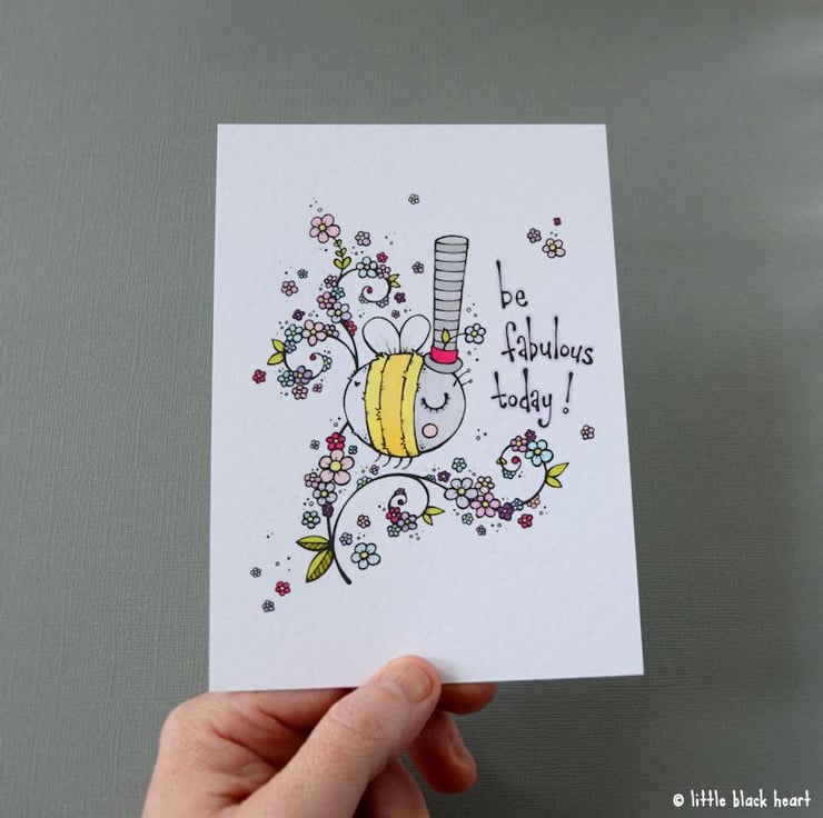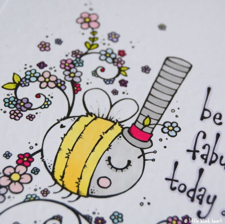 a fabulous little bumblebee in a stripey top hat, reminding you to be fabulous today! (and every day!)