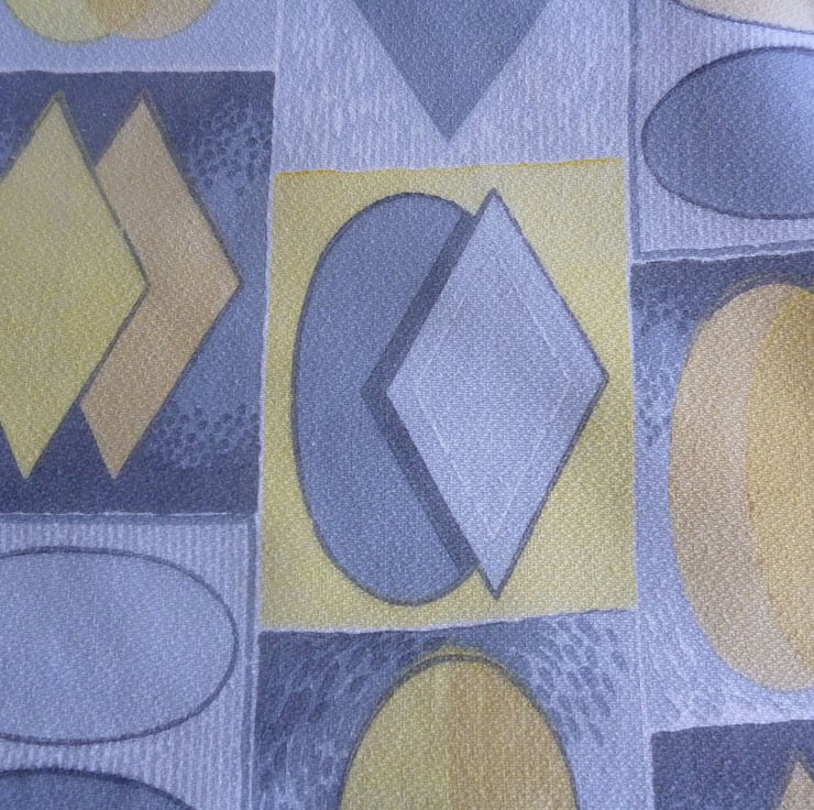 This cushion cover is made from a piece of vintage cotton barkcloth fabric which has been reclaimed from a curtain. The fabric, which is in very good reclaimed condition, features diamonds and ovals in grey and lemon and dates from the 1960s. The back of the cushion cover is made from plain grey cotton twill and the cover fastens with a zip at the bottom. The cover is made to a high standard and all internal seams are overlocked for strength.