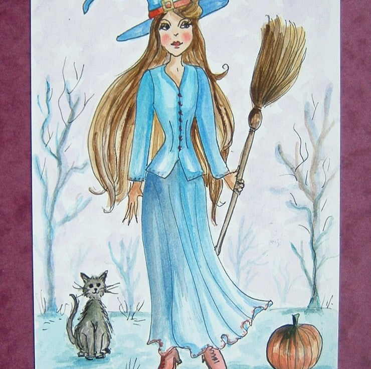 This hand drawn and hand painted picture has been created using quality materials. It will come in a clear polybag to protect it. This is an original and not a print. The painting itself measures 4" x 6" and has been mounted onto plum coloured card that measures 7" x 5".