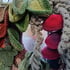 made with acrylic yarn, wooden beads, buttons and when possible zips.