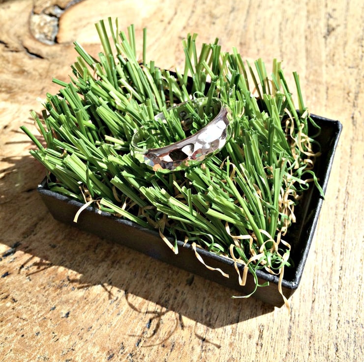It's a nice and chunky ring that I hammer allover with my tiniest hammer, then polish to a high shine to ensure every little face reflects the light.