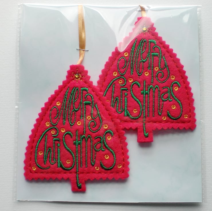 Set of 2 Christmas greeting decorations to hang on your tree, or anywhere around your home.