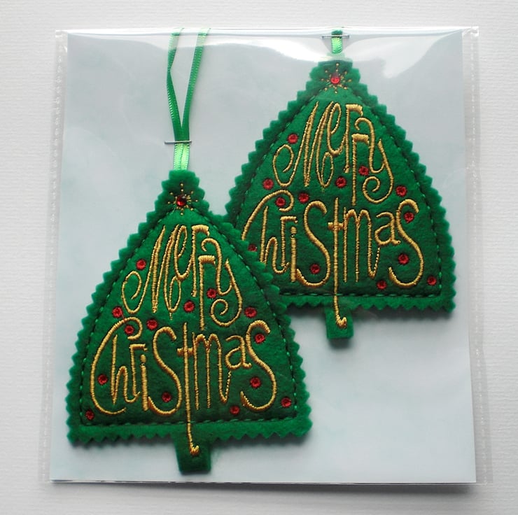 Set of 2 Christmas greeting decorations to hang on your tree, or anywhere around your home.