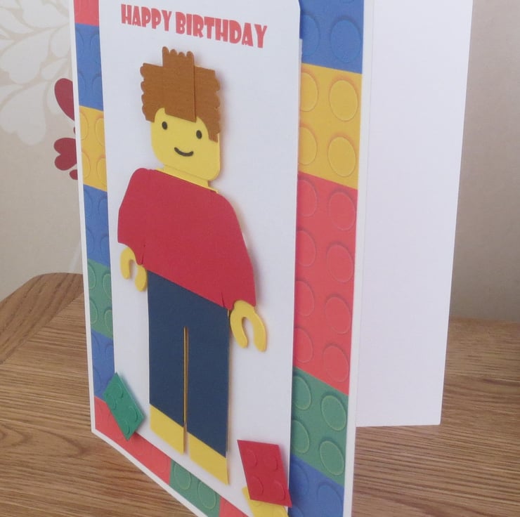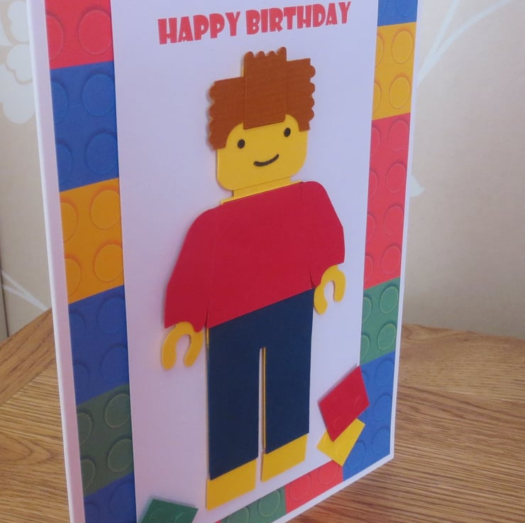 and decorated with a brick design and has a cute Minifigure 3d brick man
