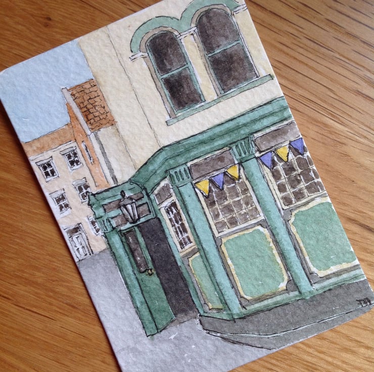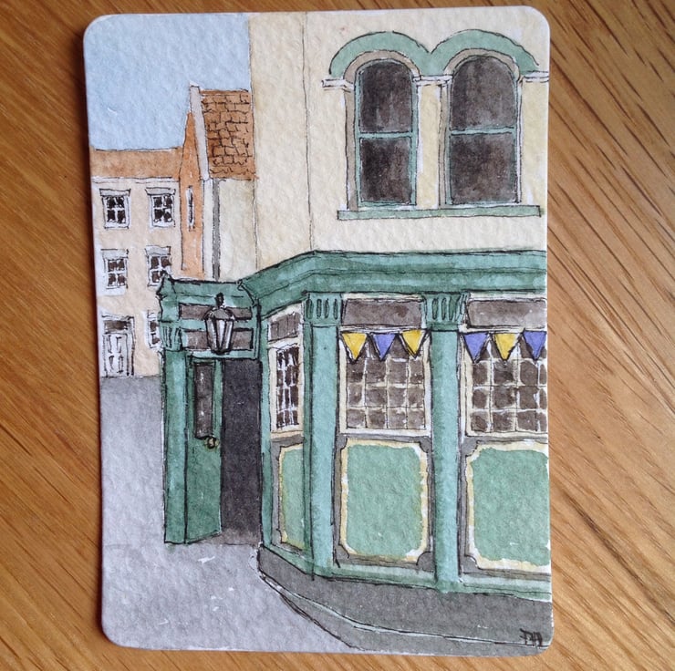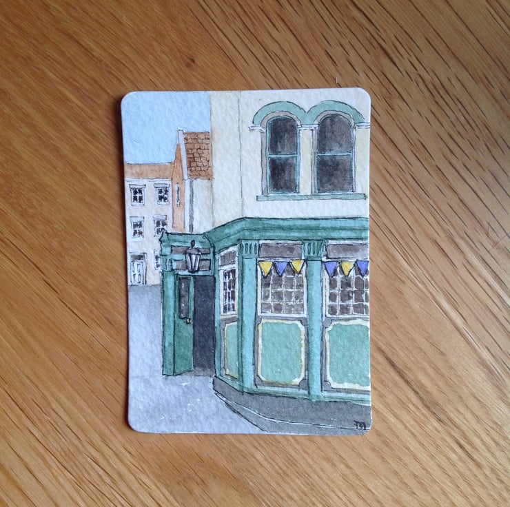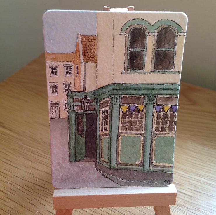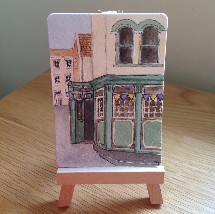 An original ACEO sized watercolour based on a pub I saw in Whitby early in the summer.