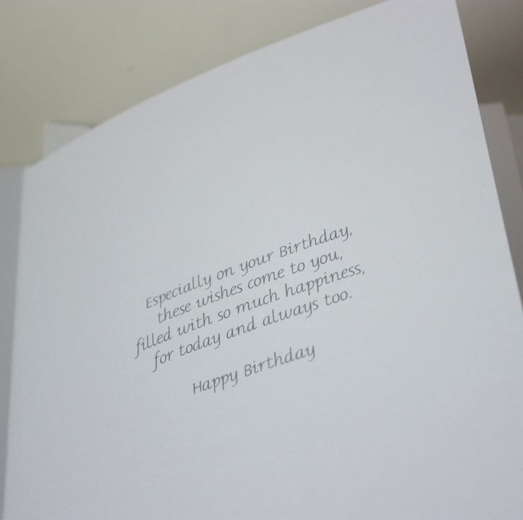The card measures approx 7" x 5" (17.5cm x 12.5cm) and comes with a white envelope, sealed in a cellophane wrapper.