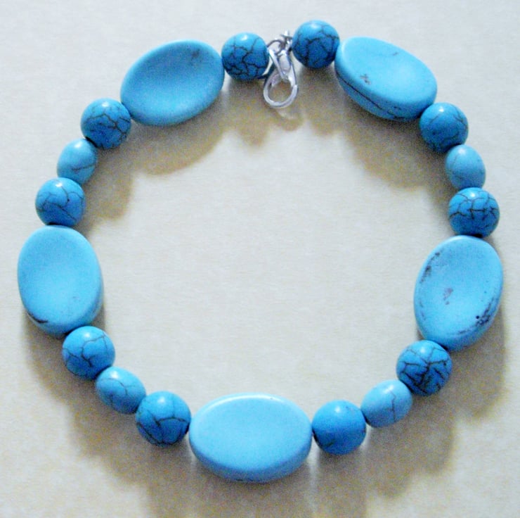Turquoise Howlite Bead Bracelet - UK Free Post