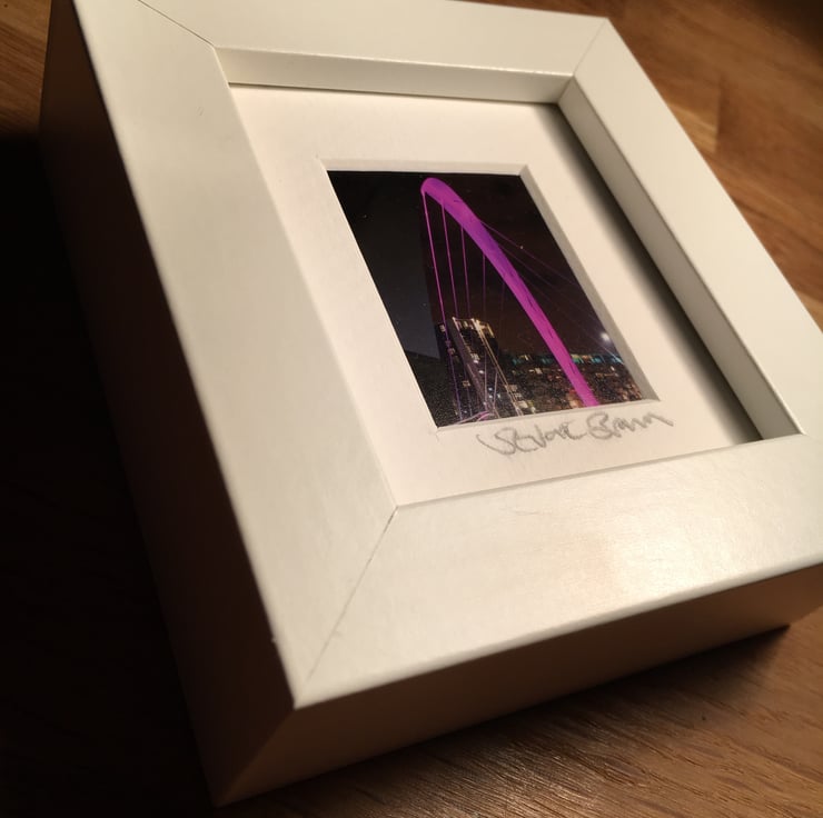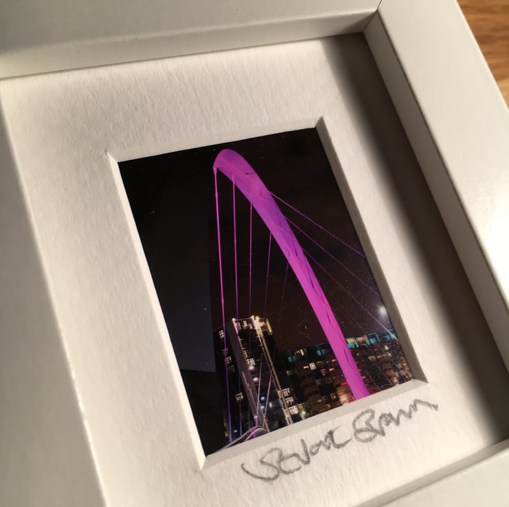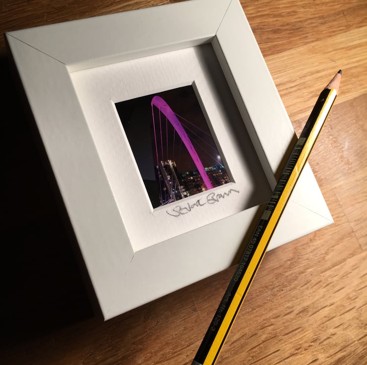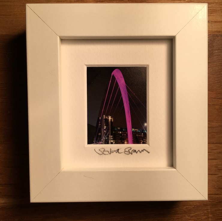 This is a very cute small and chunky white frame in which I have mounted and signed my original photograph of the iconic Squinty Bridge in Glasgow