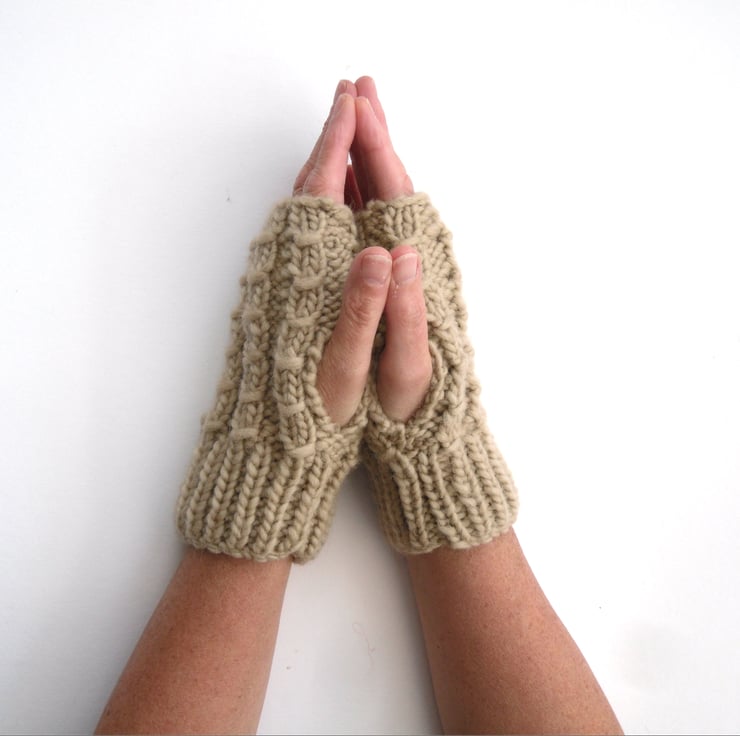 So scrumptious and warm ! ! hand knitted mock cable gloves in a simple design. Knitted in 100% wool , these are wicked casual gloves.