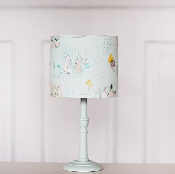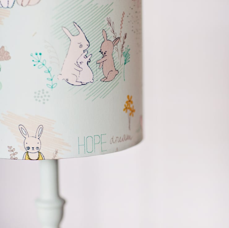 Nursery lamp shade, Pastel blue, Rabbit lamp, nursery décor, drum lampshade