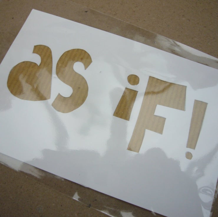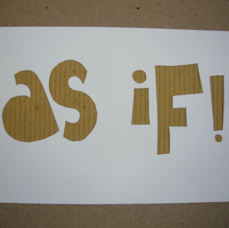Sent from UK - handout phrase "as if" using card and backed with hand cut card background to emphasise the phrase