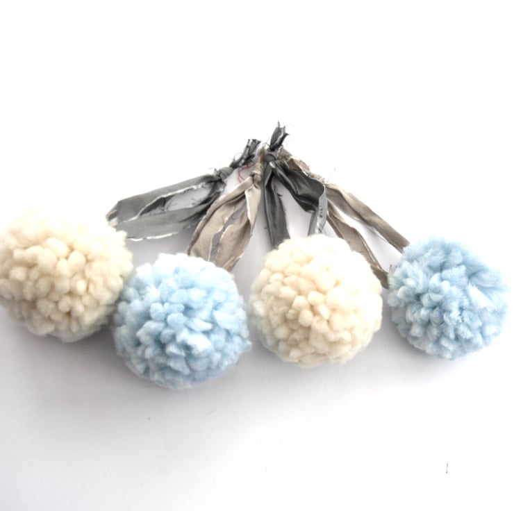 2 x cream pom pom with light grey raw silk hanger - SOLD OUT