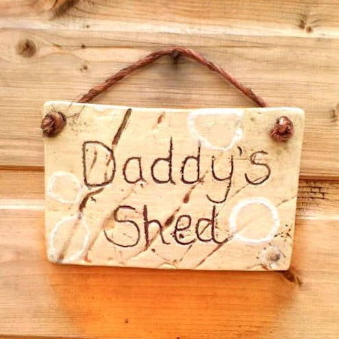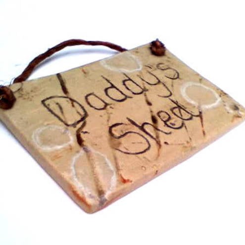 Custom made ceramic plaque with requested engraved wording, light decorative background and white circular glaze patterns.
