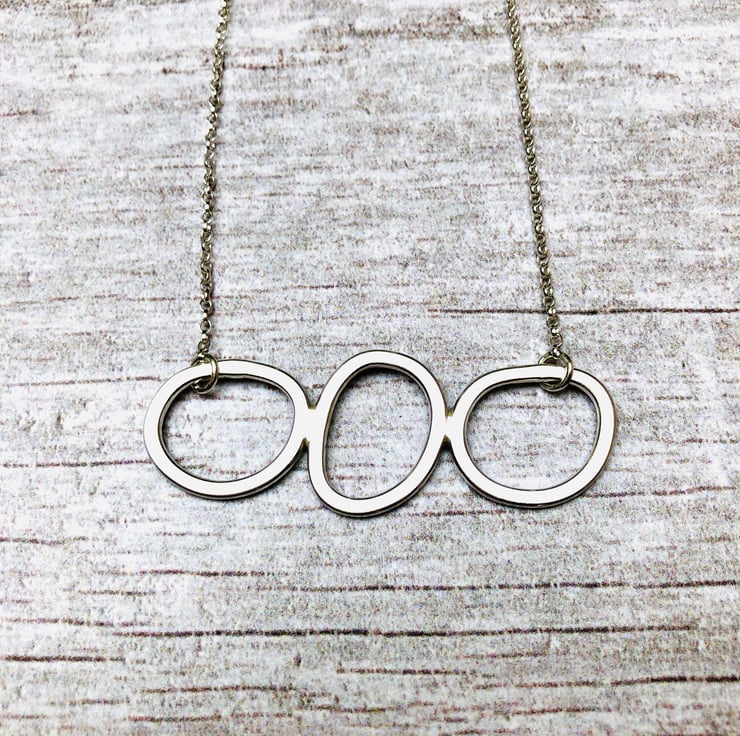 Three lovely Sterling Silver 'Stepping Stones' are crafted individually by hand, and soldered side by side in an asymmetrical design. Each necklace will be different to the next due to the random nature in which they are made. Unique to you!