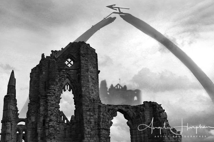 I took the photographs on a stormy day and wanted to create a Gothic feel and an air of mystery to this composite work. Whitby and the Abbey have associations with the Gothic through the architecture and literature.