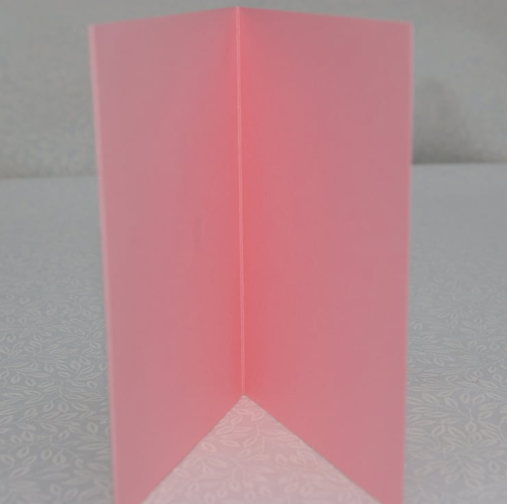 The design is then mounted into a tri fold light pink rectangle aperture card.