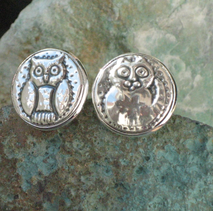 The Owl and the Pussycat cuff links hand crafted in pewter. These cufflinks have been individually handmade in shiny modern pewter, and feature the romantic pair from Edward Lear's rhyme. Each link measures 21mm across. They are presented in a smart grey gift box and would be a perfect present for a man for a 10th Wedding Anniversary, Wedding, Birthday or Christmas.