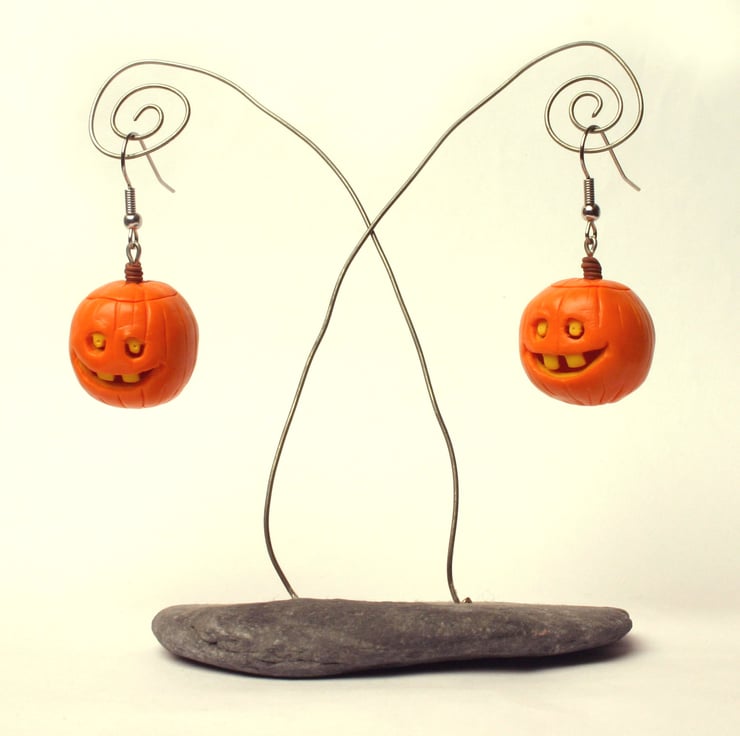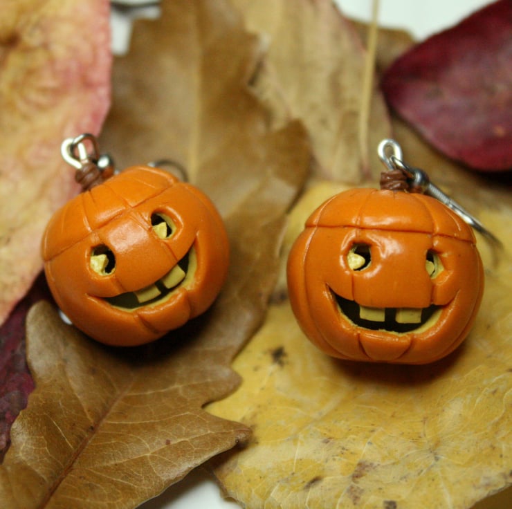 These polymer clay earrings have been hand made with different colored clay's and hypo allergenic surgical steel ear wires. As i use no molds there will be small differences between each pumpkin, but only enough to make them a bit more special ;)