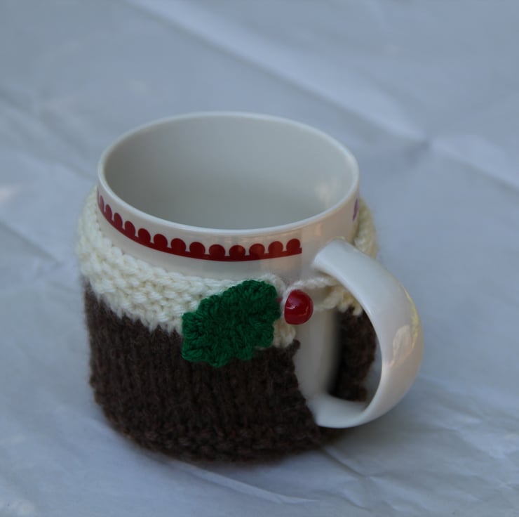 What could be more festive than slurping your Christmas morning tea from a mug which is cosied by a hand knitted Christmas Pudding?