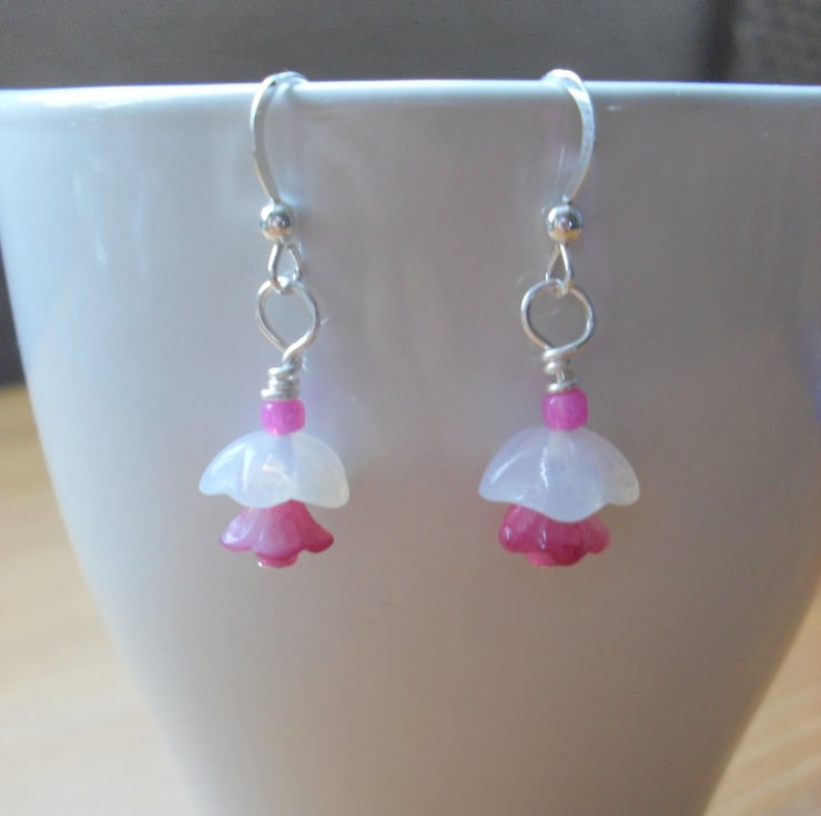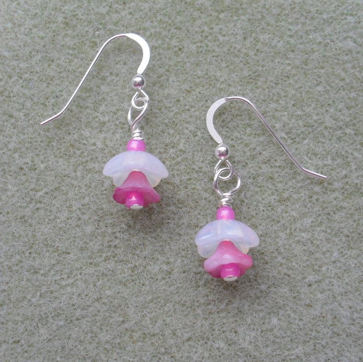 Flower earrings are made with Czech glass beads and are attached to sterling silver ear wires with silver plated headpins