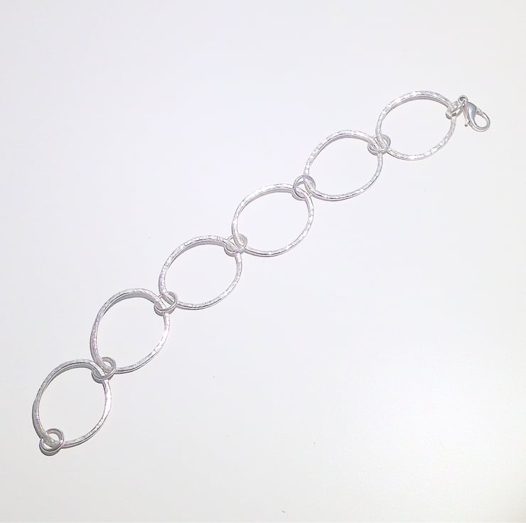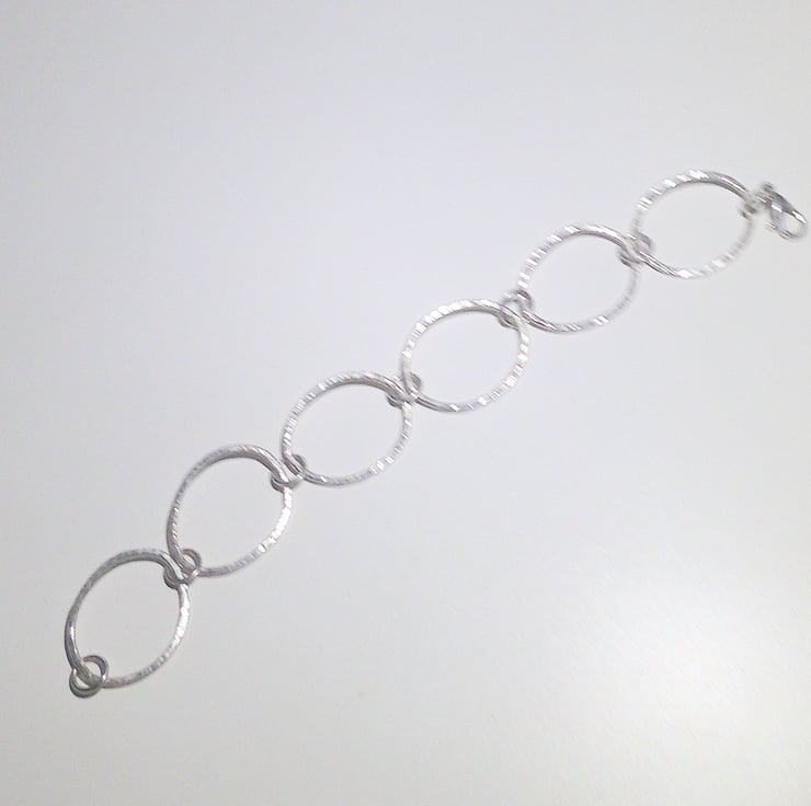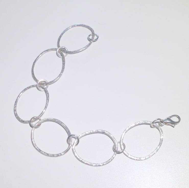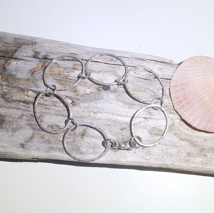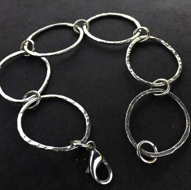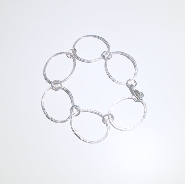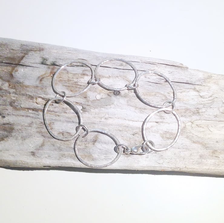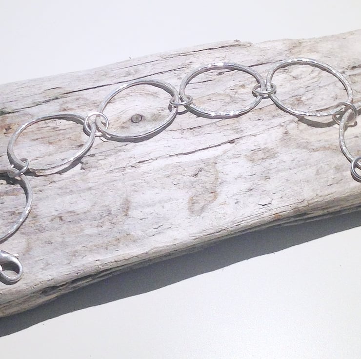 It has been handmade from hammer finished loops which have been organically shaped and joined with soldered sterling silver jump rings.