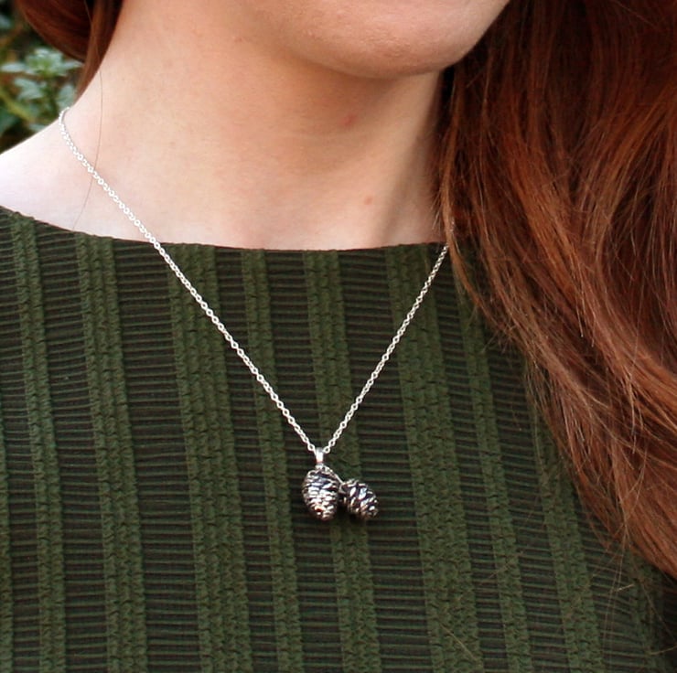 Crafted from two actual miniature pinecones this charming and tactile necklace is hand-cast using the ancient technique of Lost Wax Casting, meaning no two necklaces will ever be the same.