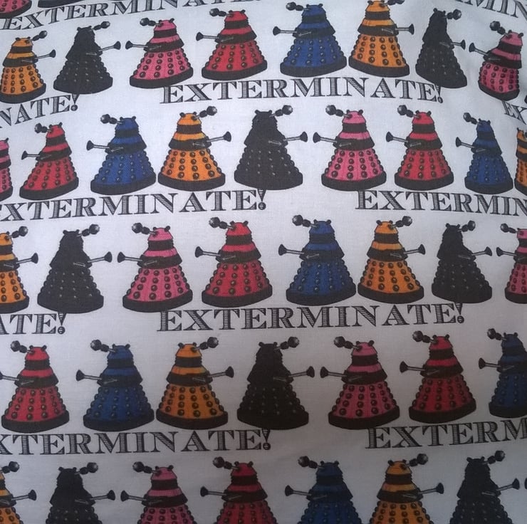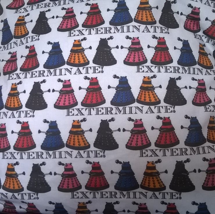 A Dr Who themed 18" decorative pillow cushion cover Exterminate.