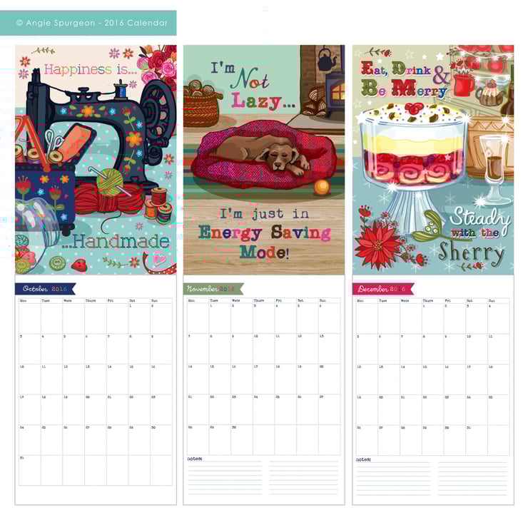 Last year I created a similar calendar with a mixture of my illustrations and patterns throughout, it proved popular, so I've updated the calendar for 2016.