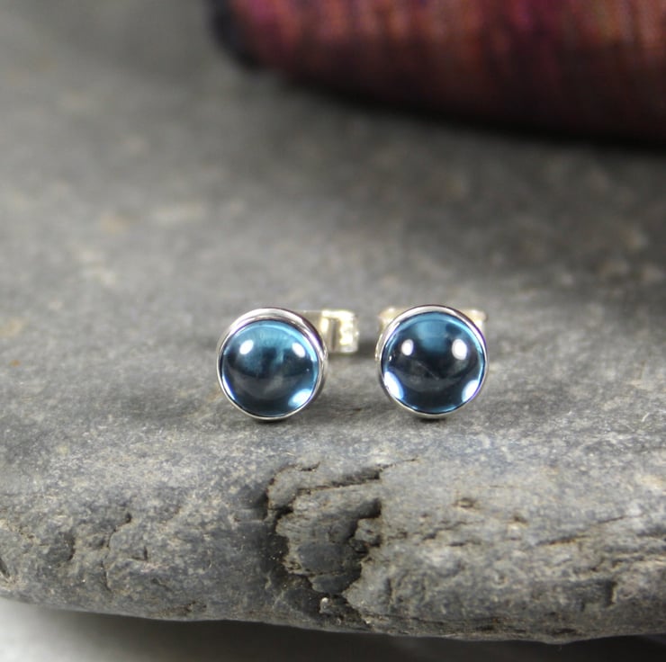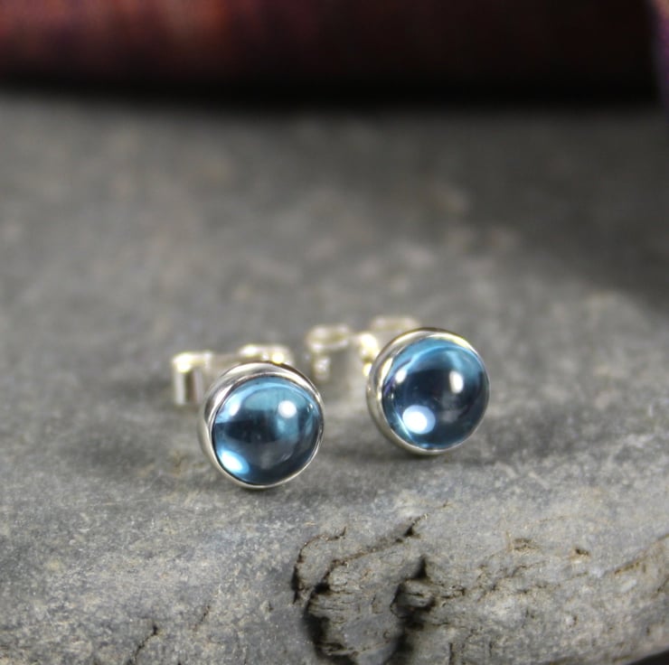 Simple sterling silver stud earrings set with pretty Swiss blue topaz cabochons.
