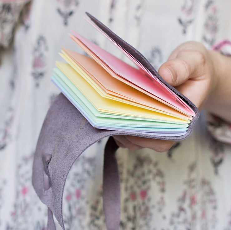 - 120 blank pages (front and back) of 4" x 3" silky smooth 160gsm pastel rainbow card