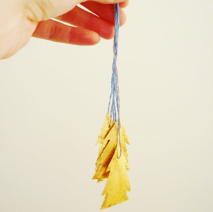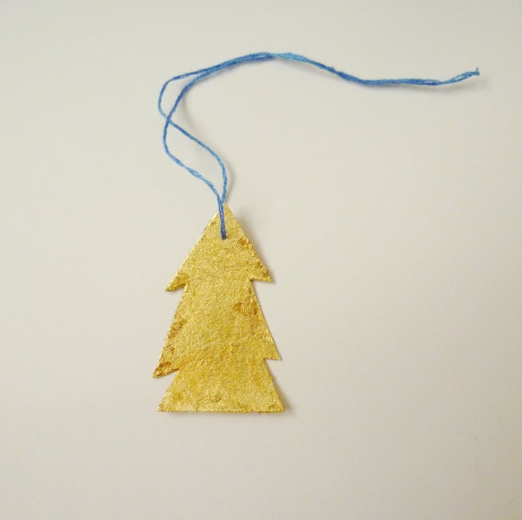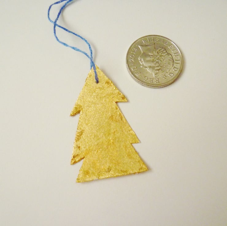 Each of these weeny little gold Christmas tree decorations has been meticulously gilded with by hand with gold leaf and then varnished several times to give them a warm, festive shine!
