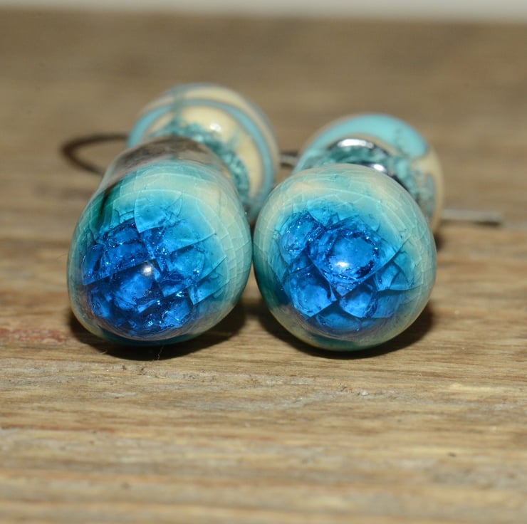 The ceramic drops are handmade by UK Artist Scorched Earth and have a stunning blue sparkly bottom as shown in the pictures.