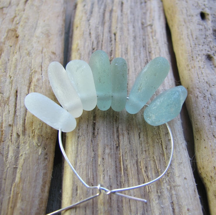 7 Natural sea glass beads, top drilled, chunkies , supplies (56)