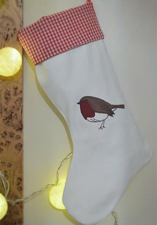 The Robin Redbreast, like the Christmas Tree, has long been part of the tradition of Christmas and certainly cheers me up during the gloom of winter. If I’m working in my garden during the winter months I am often joined by one of these cheery fellows and I have enjoyed creating this design for my stocking.
