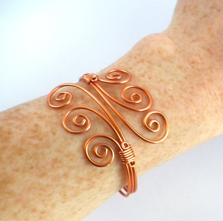 Handmade by curling copper coloured aluminium wire into elegant swirls, secured with delicate wire wrapping.