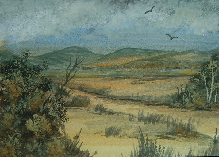 This tiny landscape watercolour has been created using quality materials. It will come in a clear polybag to protect it.